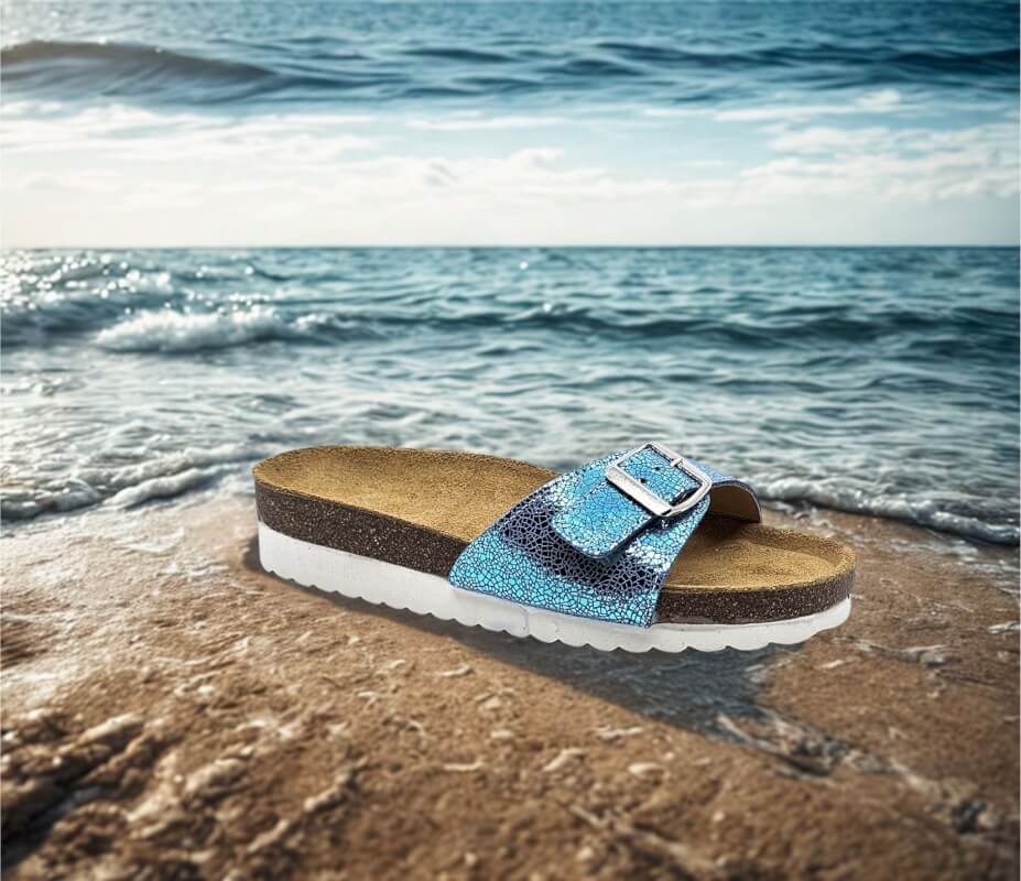 S posebnim naglaskom na podršku stopalu, izrađen je od prirodne kože s uloškom od pluta koji se prilagođava vašem stopalu.
