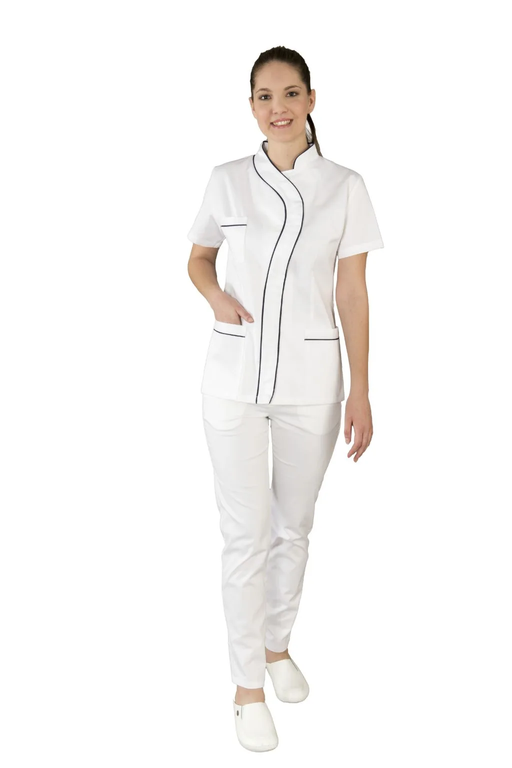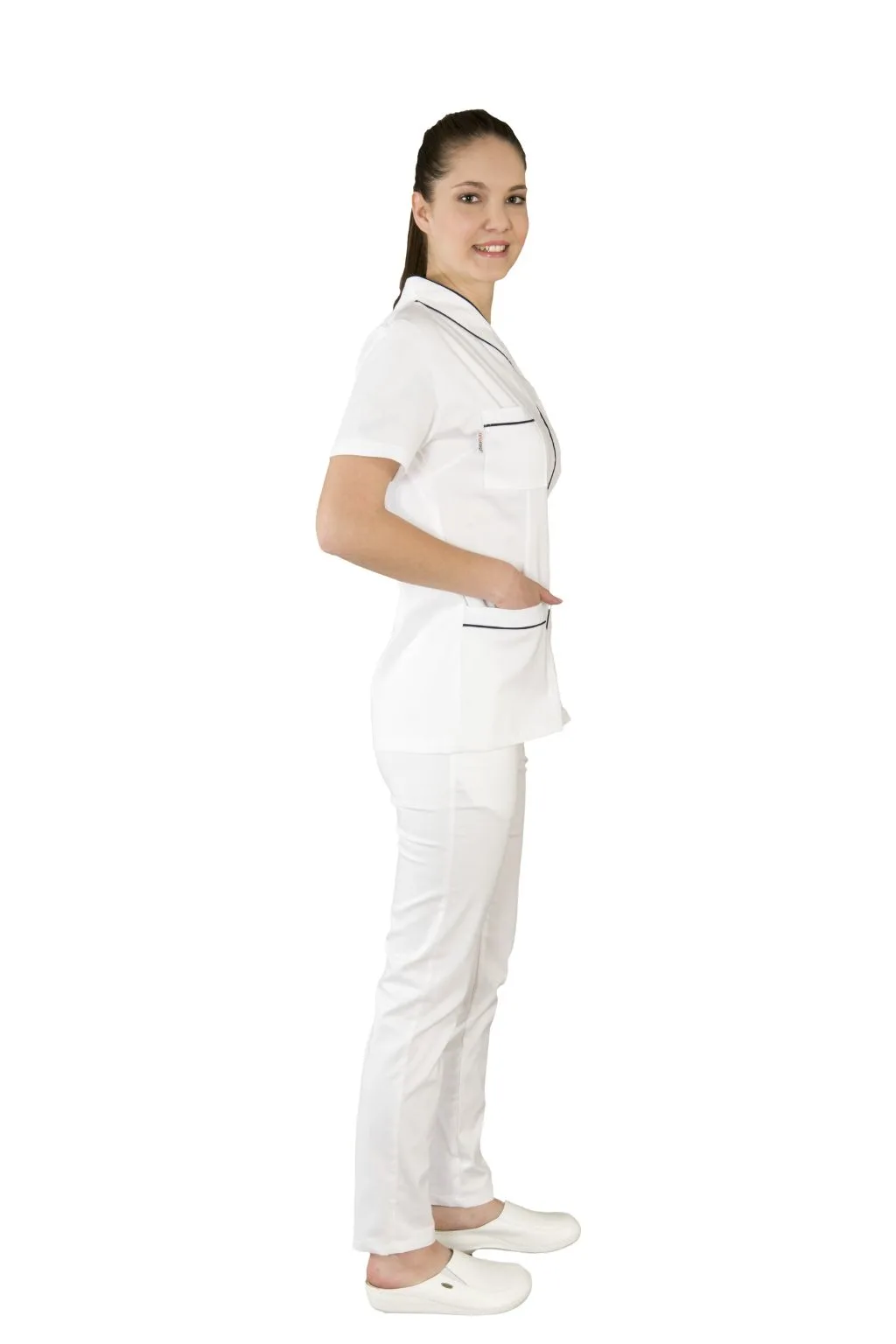 Funkcionalni džepovi omogućuju sigurno odlaganje sitnog pribora, a kvalitetan materijal osigurava otpornost na često pranje, dugotrajnost i postojanost oblika. Model 0159 idealan je za liječnice, stomatologinje, farmaceutkinje, kozmetičarke i drugo medicinsko osoblje koje želi profesionalan i estetski usklađen izgled.