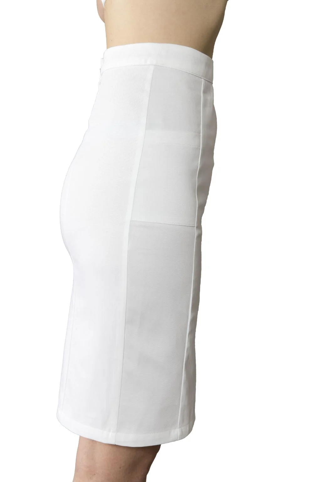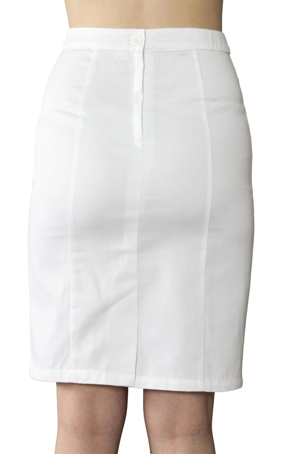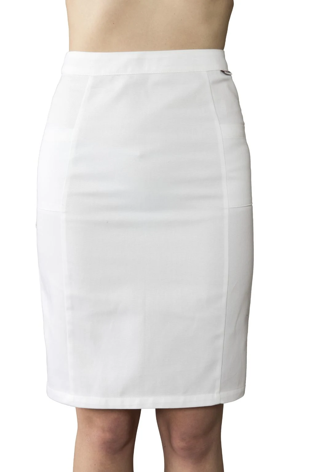 Osnovna bijela boja dodatno naglašava čistoću i profesionalnost, čineći ovu žensku medicinsku suknju idealnim izborom za djelatnice koje žele elegantniju alternativu klasičnim radnim hlačama.