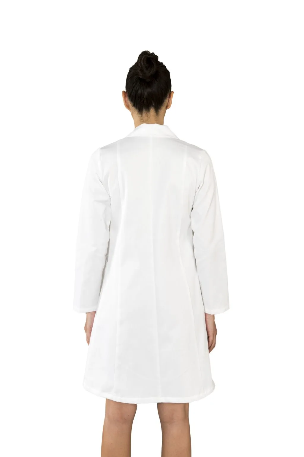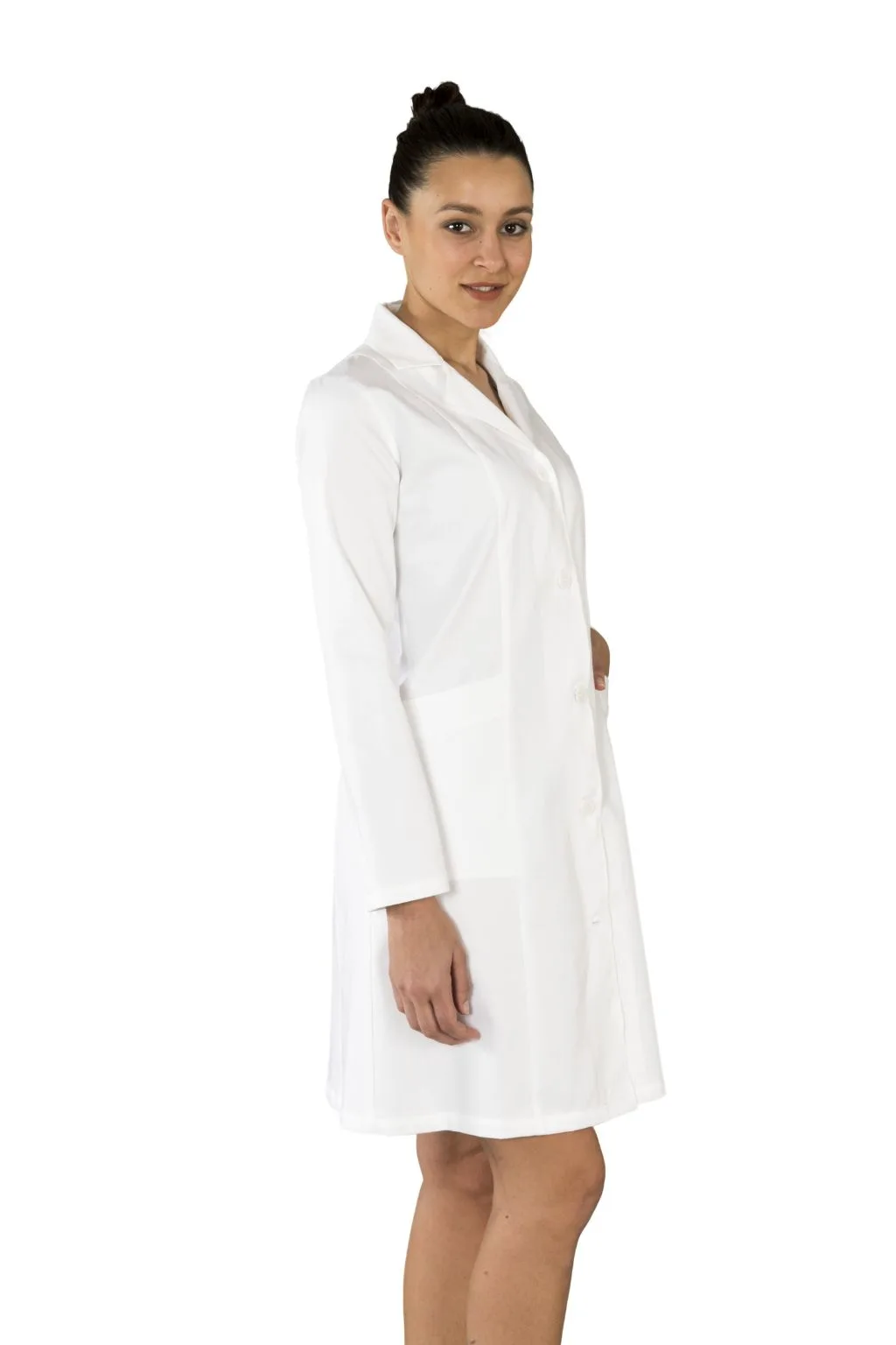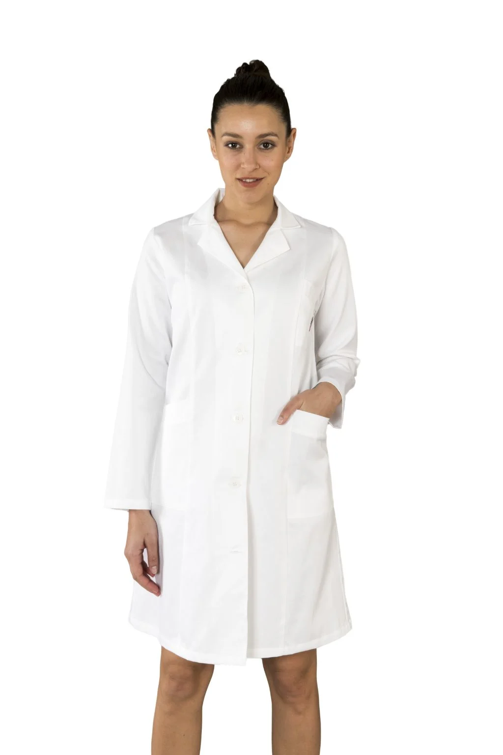 Ženski radni mantil strogo je strukiranog kroja, dužeg modela i dugih rukava. Bijeli medicinski mantil za elegantan i profesionalan izgled.